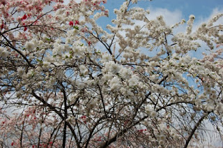 近くのお家の花桃が満開となった。木一杯に白い花を付けている。